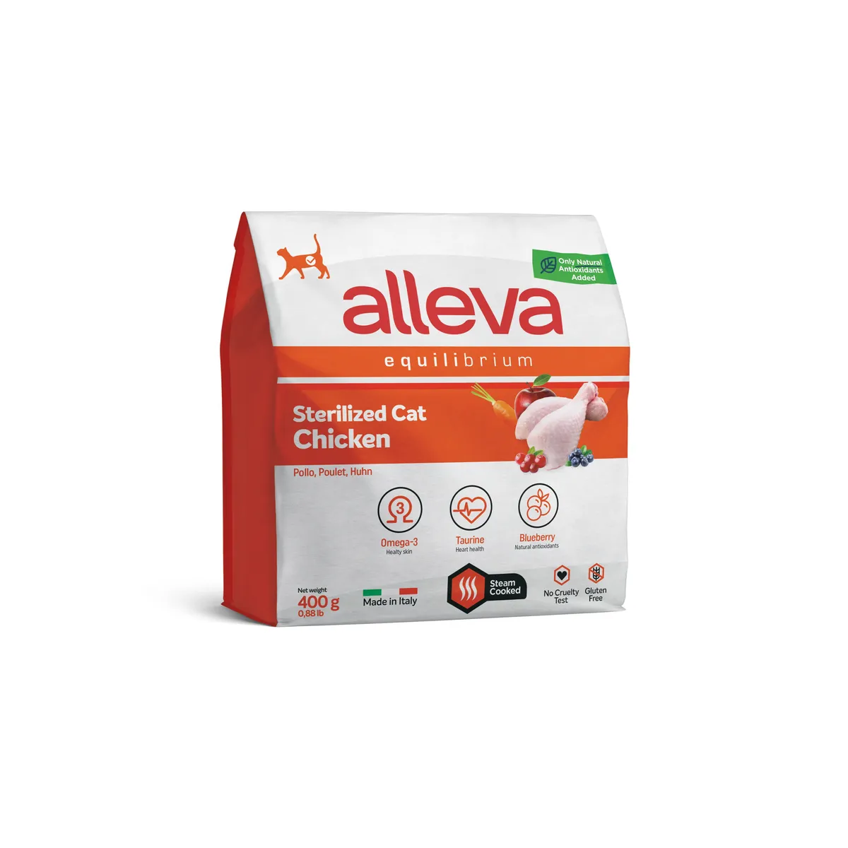 Alleva: Эквилибриум, корм для кастрированных котов и стерилизованных кошек, с курицей, 0,4 кг
