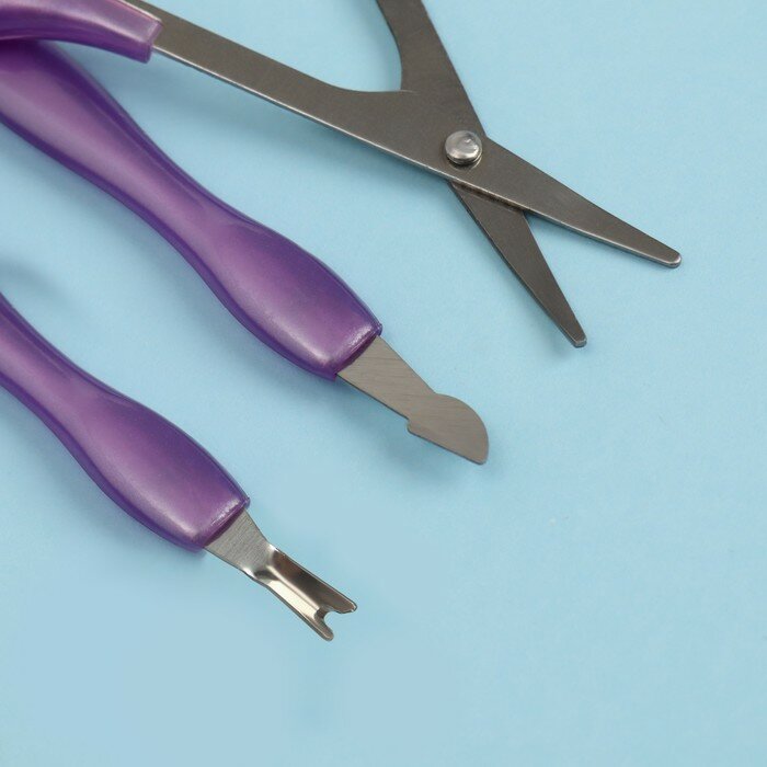 Набор маникюрный, 3 предмета, цвет фиолетовый