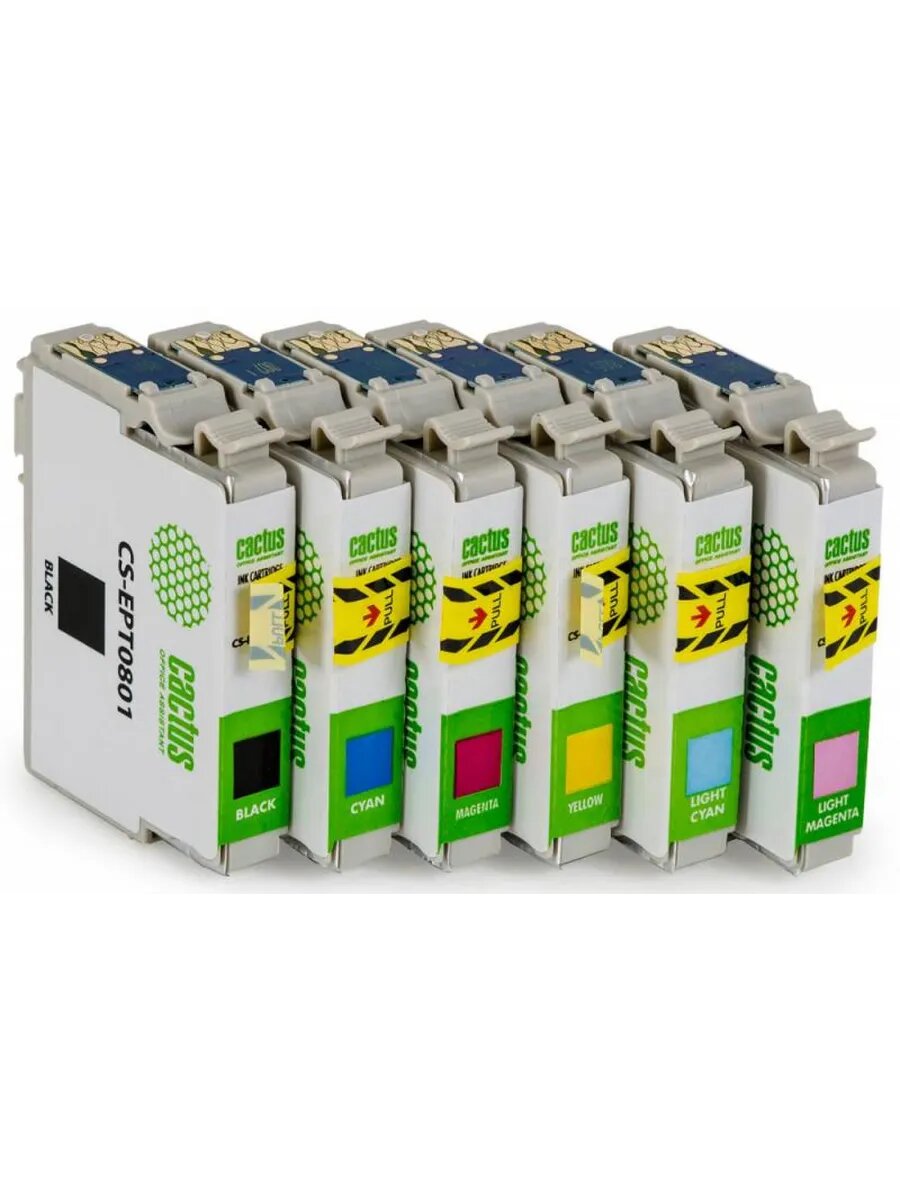 Картридж CACTUS CS-EPT0807, черный / желтый / голубой / пурпурный / светло-голубой / светло-пурпурный / CS-EPT0807
