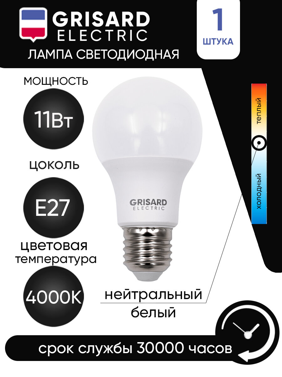 Купить Лампа светодиодная GRISARD ELECTRIC шар A60 Е27 11Вт 4000К 220В 1шт