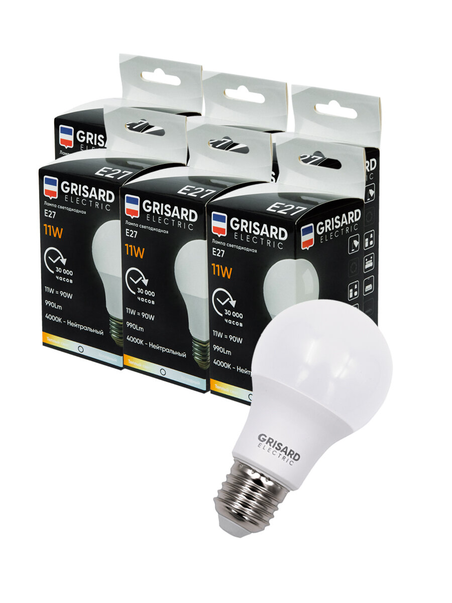 Лампа светодиодная GRISARD ELECTRIC шар A60 Е27 11Вт 4000К 220В 10шт