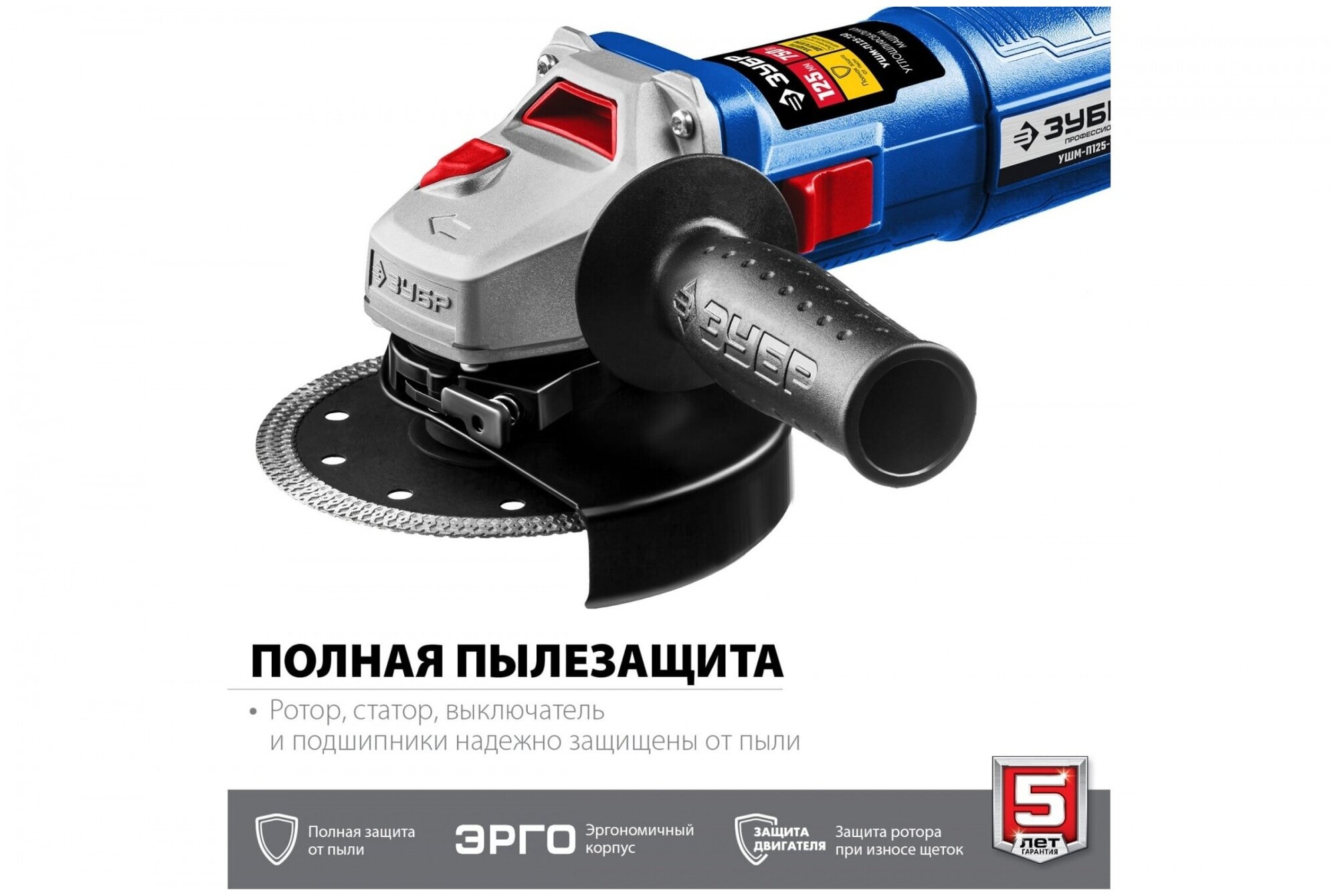 УШМ ЗУБР УШМ-П125-750, 750 Вт, 125 мм, без аккумулятора