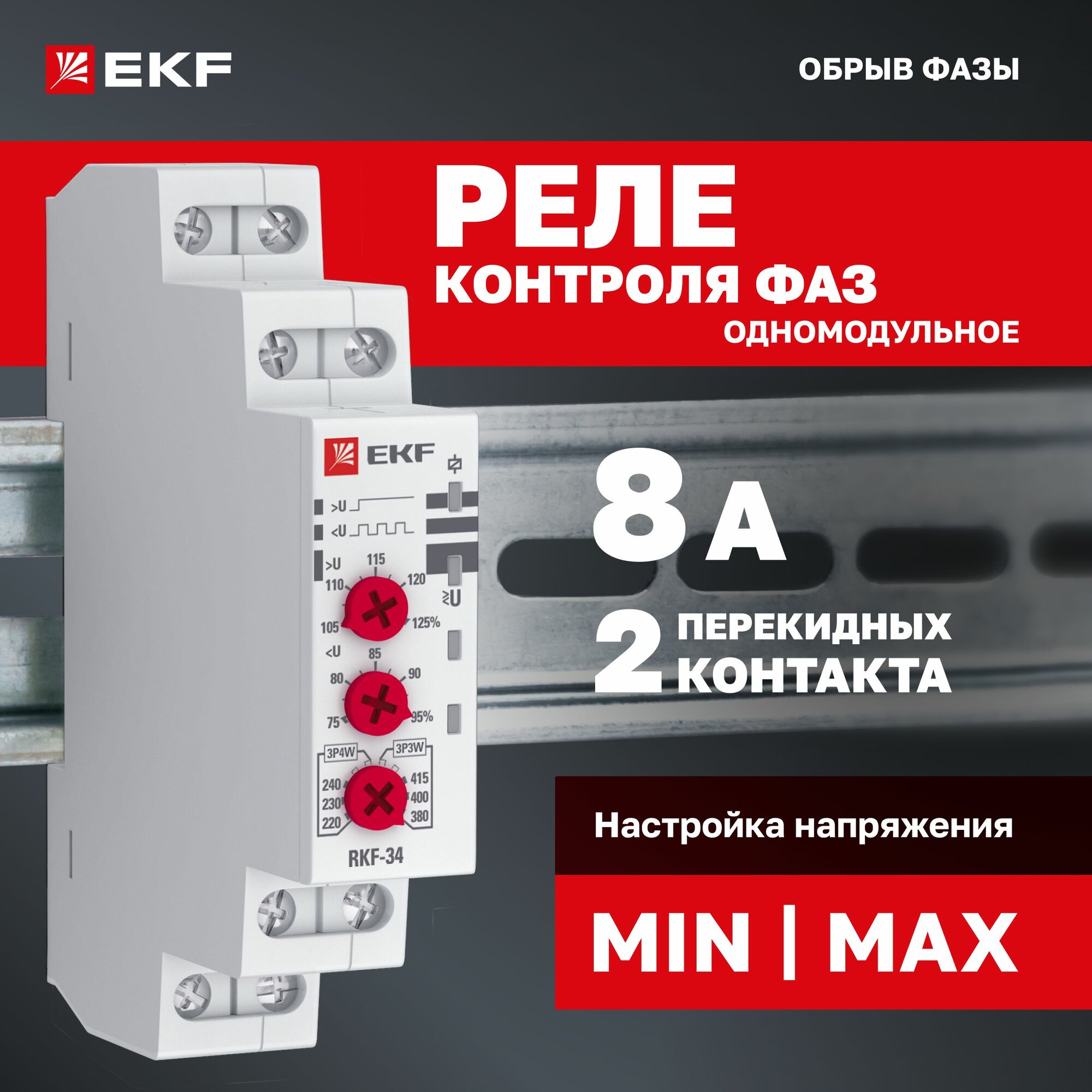 EKF Реле контроля фаз RKF-34 1 шт. 8 А, артикул: rkf-34