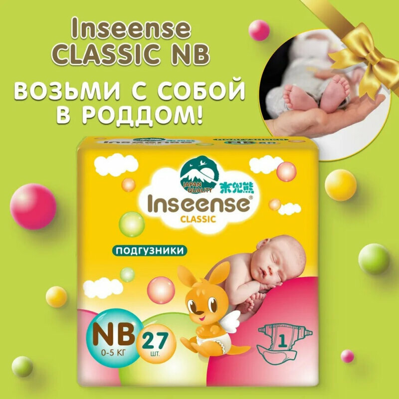 INSEENSE Classic Подгузники NB 0-5кг, 27 шт