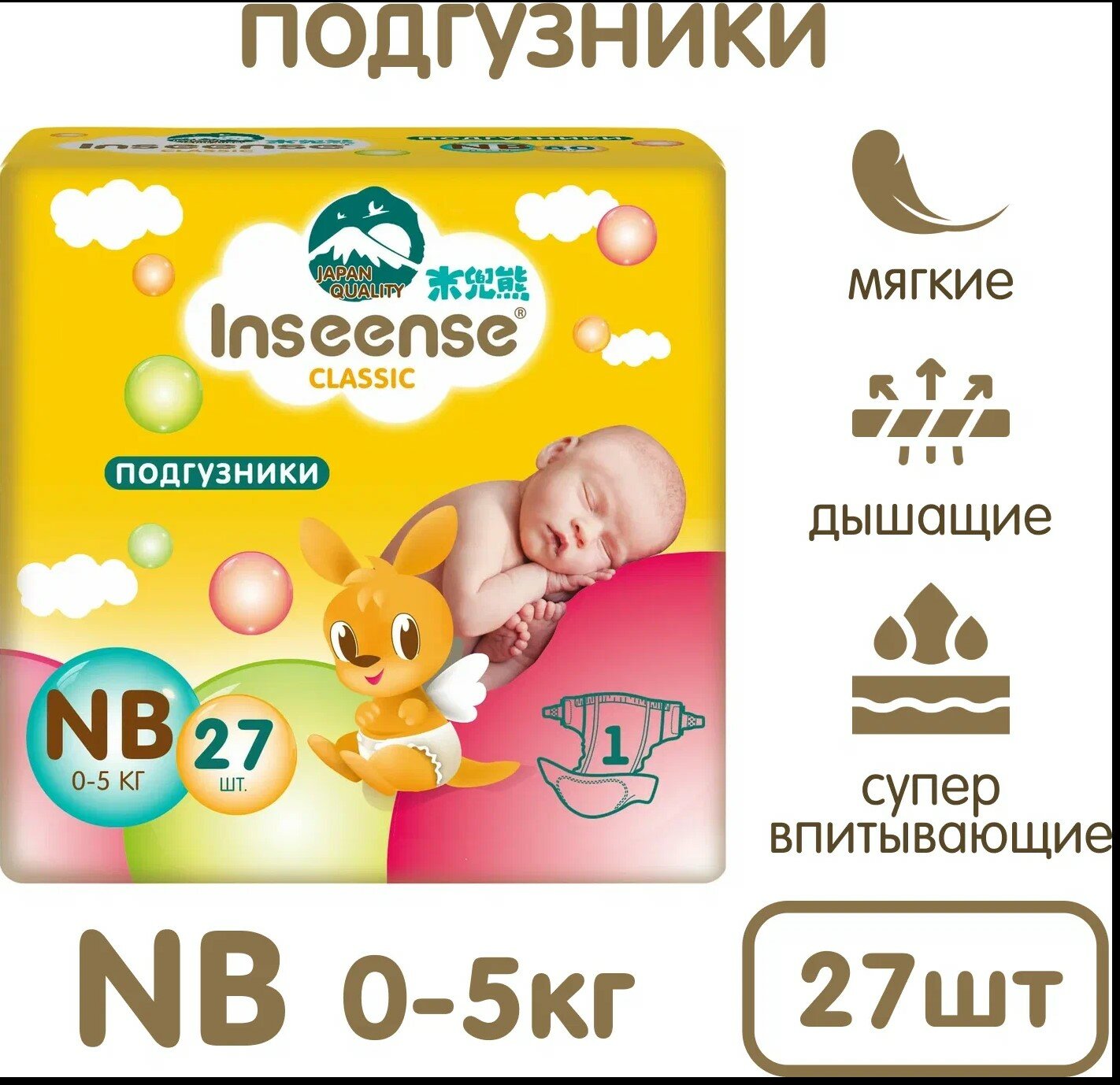 Inseense Classic Подгузники NB (27шт) (жёлтая) 0-5кг интересное: