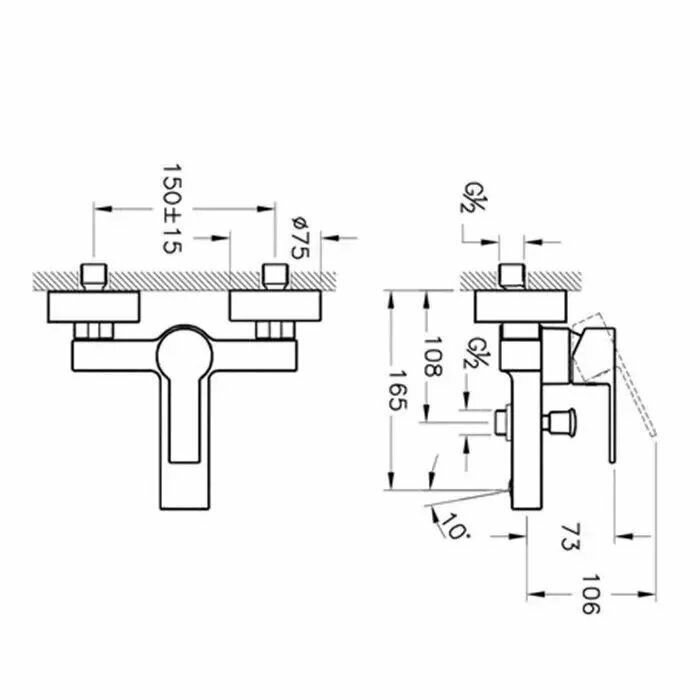 Flo S, настенный смеситель, неповоротный излив, с выходом на душ (без лейки), картридж с регулятором расхода и температуры, арт. A41937EXP, Vitra