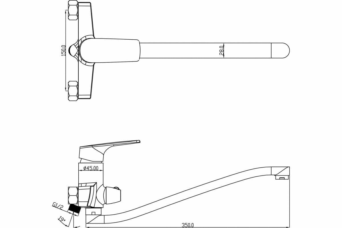 | Длина излива | 350 мм |