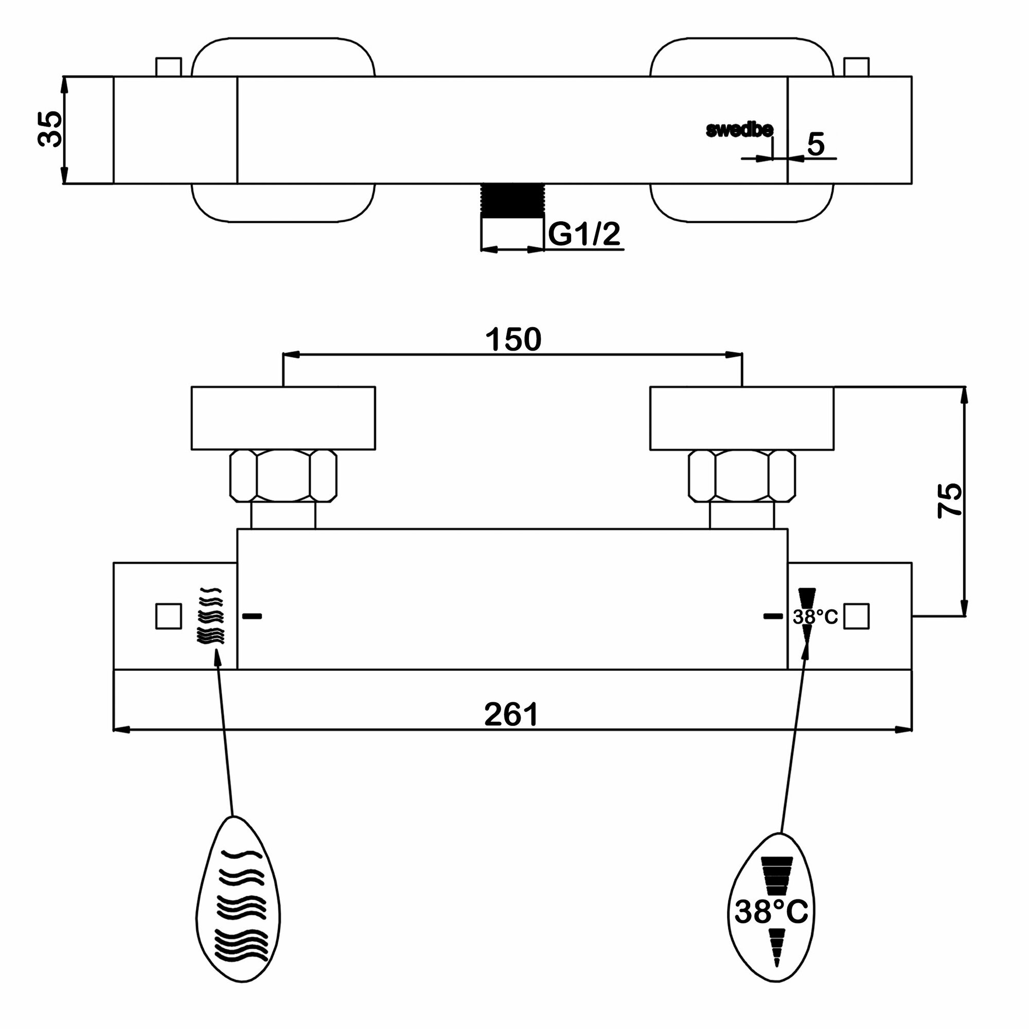 Смеситель термостатический для душа Swedbe