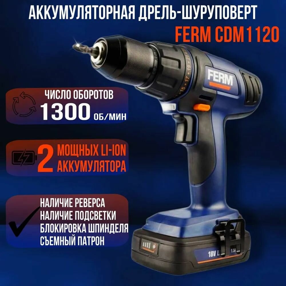 дрель-шуруповерт FERM CDM1120 18В Li-ion 1,5Ач 2 аккумулятора