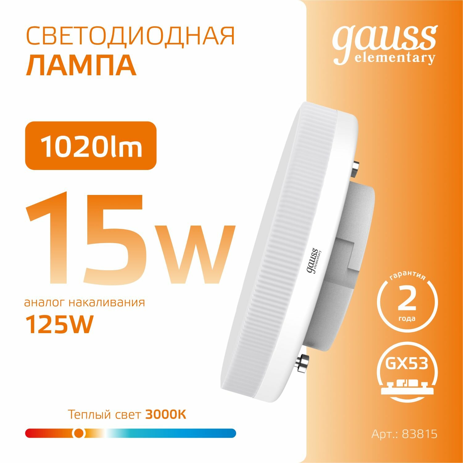 Купить Лампочка светодиодная GX53 15W теплый свет 3000K упаковка 10 шт. Gauss Elementary
