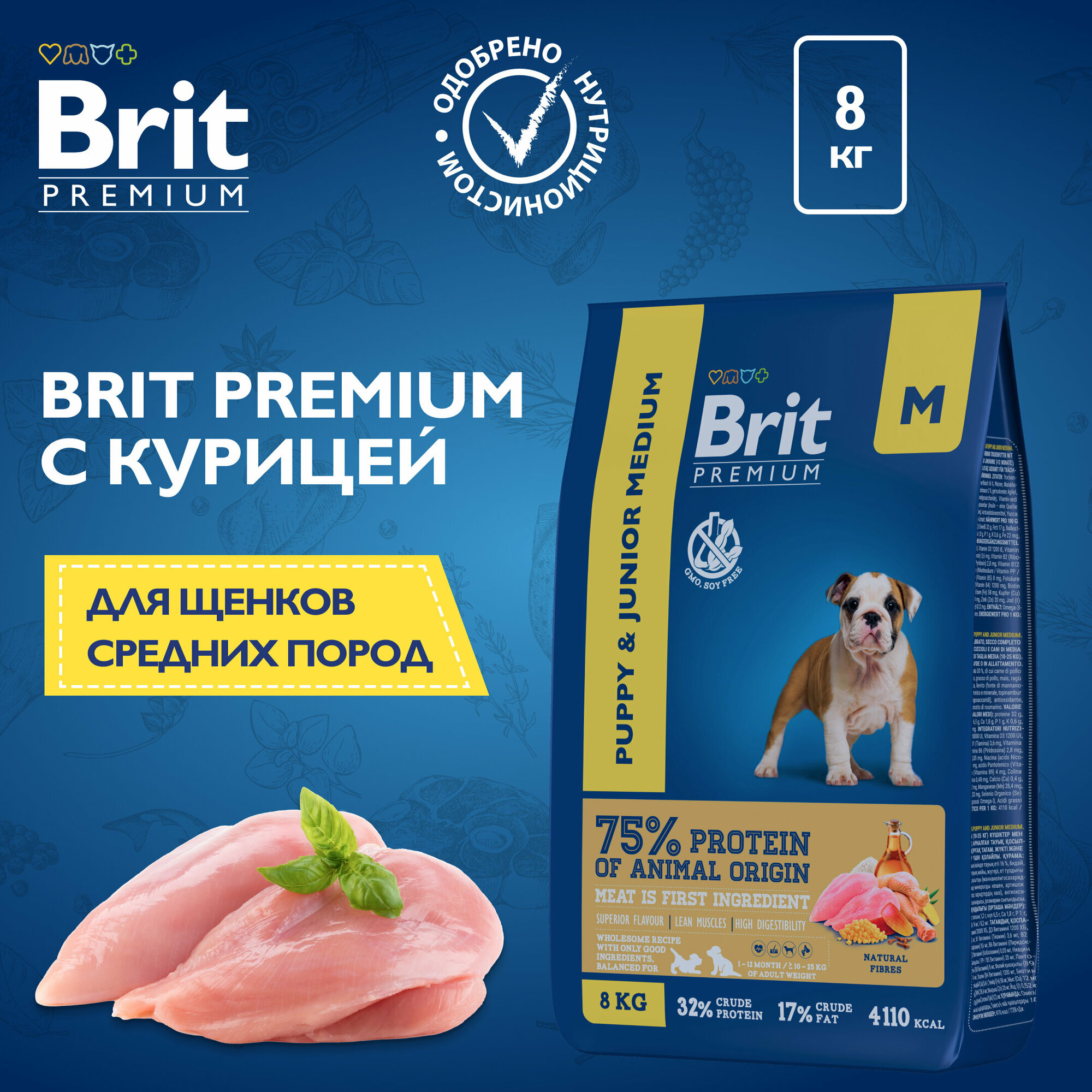 Корм для собак BRIT Premium Dog Puppy and Junior Medium для щенков и молодых собак, с курицей 8 кг