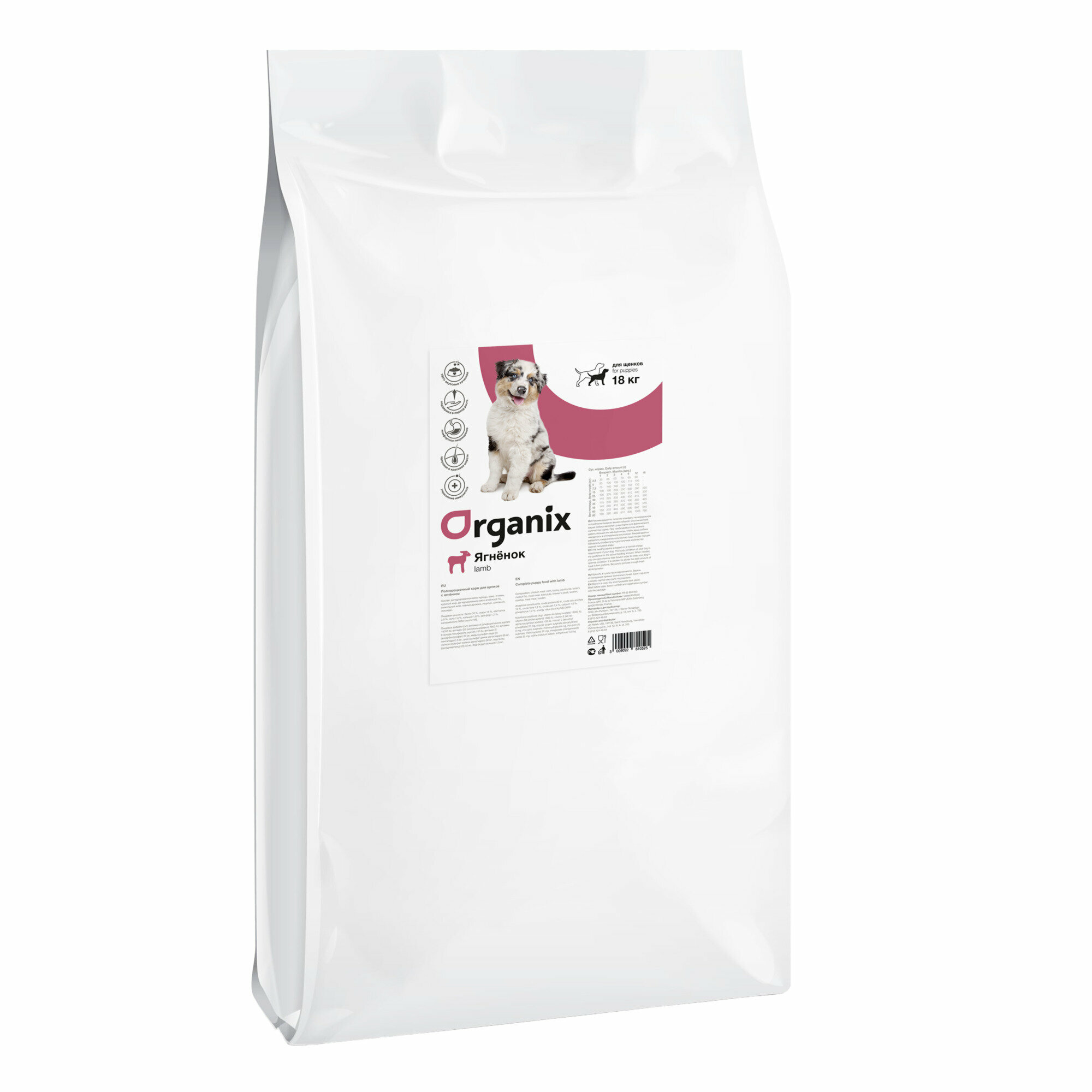 Сухой корм Organix для щенков с ягненком, 18 кг