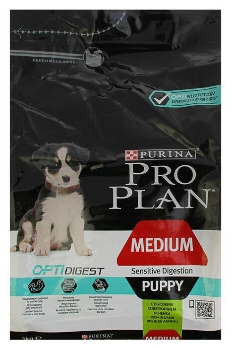 Корм PRO PLAN PUPPY Medium OPTI DIGEST (комплекс для поддержания здорового пищеварения) для щенков средних пород с чувствительным пищеварением, с ягненком, 12 кг