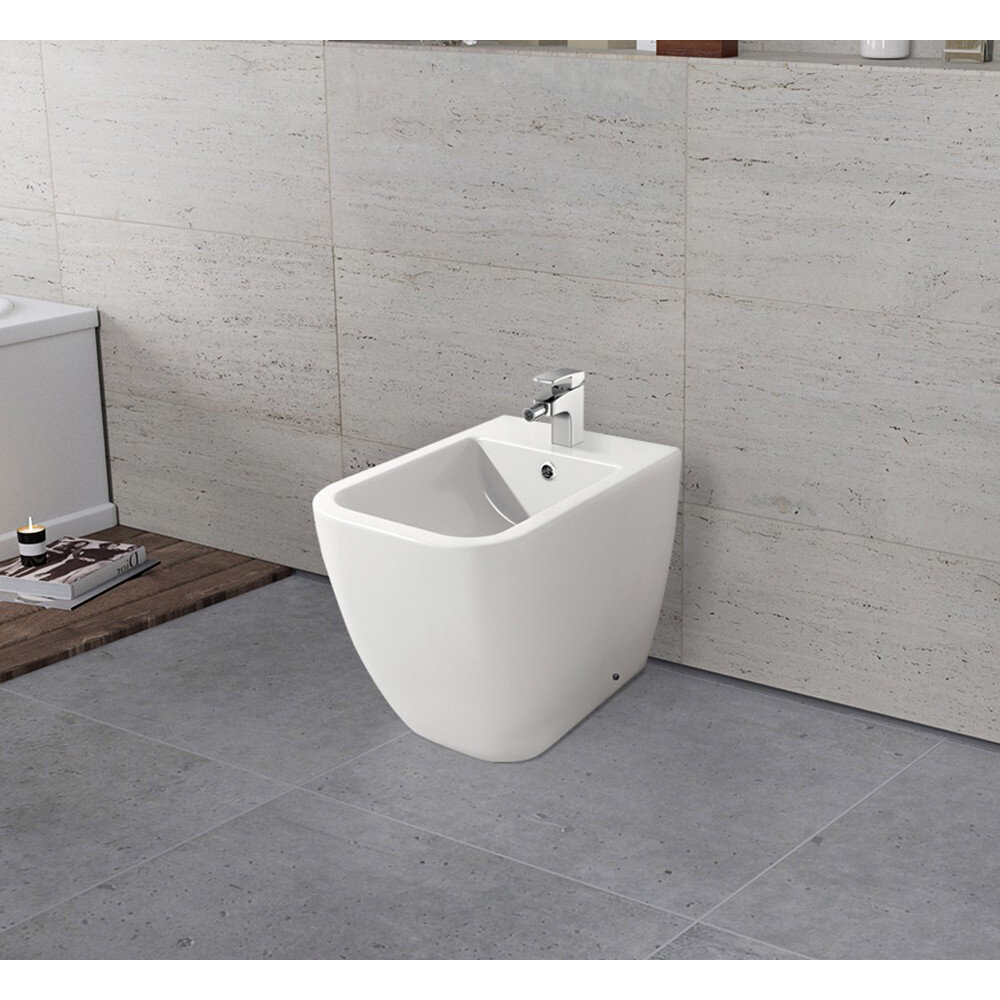 Биде напольное Lavinia Boho One 33020060: чаша биде для туалета с отверстием под смеситель, цвет глянцевый белый, фарфор интересное: