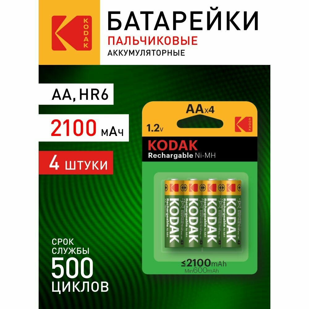 Аккумулятор Kodak, Ni-Mh, AA, Hr6-4bl, 2100 мАч, блистер, 4 шт. Kodak 9579245