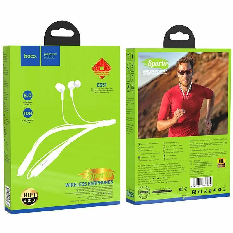 Беспроводные наушники Hoco ES51,спортивные, цвет белый