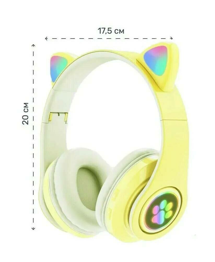 Детские беспроводные наушники Cat Ear P33M / Полноразмерные Bluetooth наушники со светящимися ушами, со встроенным микрофоном и радио (желтый)