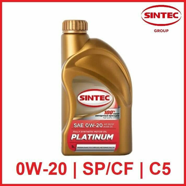 Моторное масло SINTEC PLATINUM SAE 0W-20, API SP/CF, ACEA C5 Синтетическое 1 л