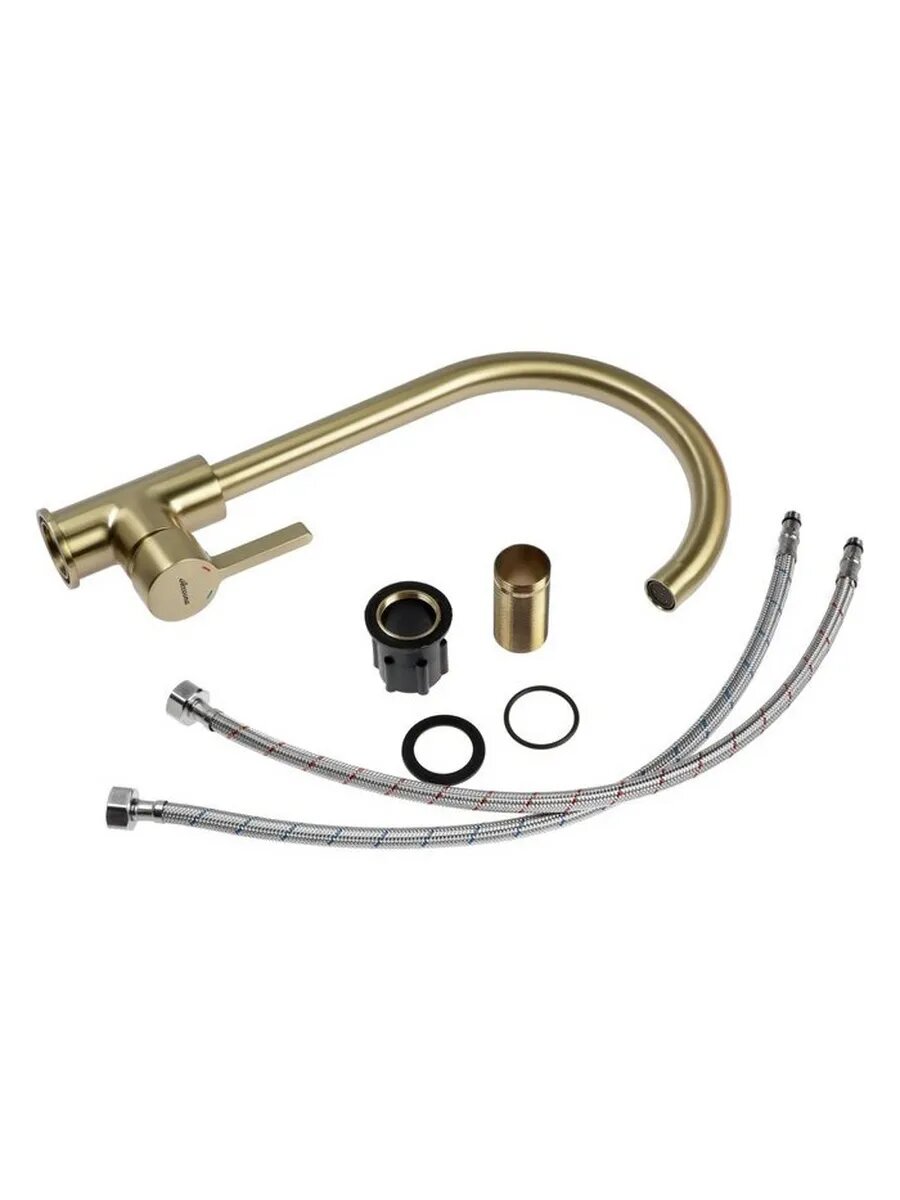 Cмеситель для кухни Accoona A4594AW, однорычажный, высокий излив, латунь, золото 4973656
