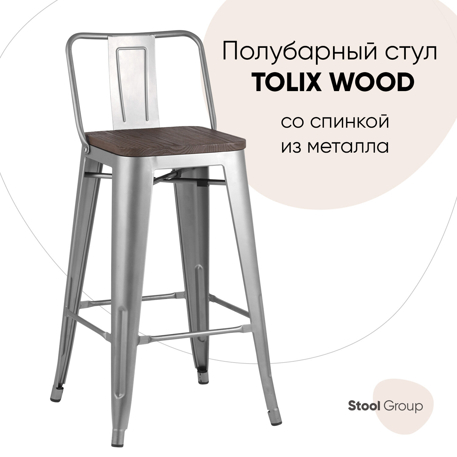 Стул полубарный Stool Group Стул полубарный TOLIX WOOD со спинкой серебристый матовый арт. УТ000000842