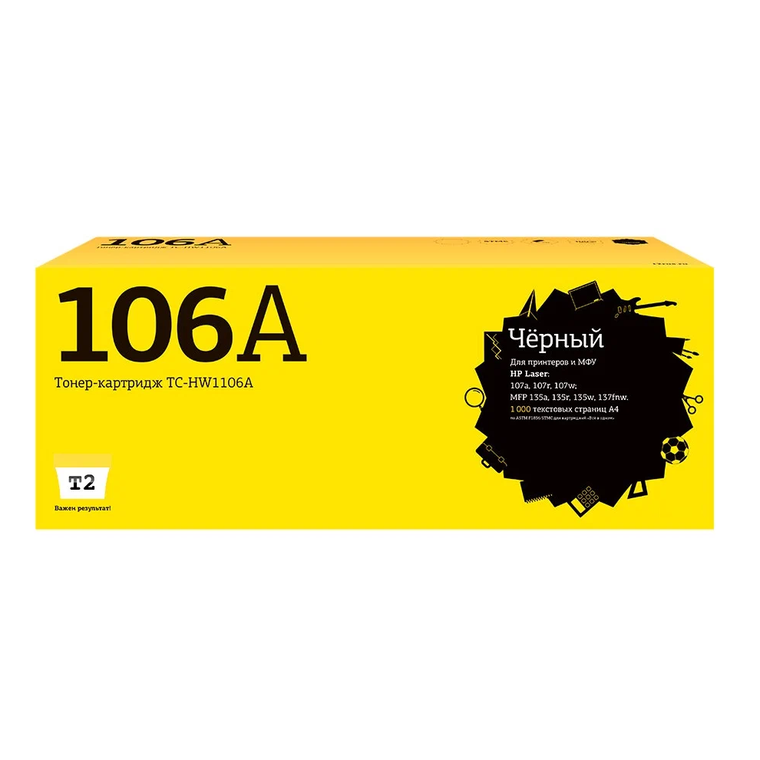 Картридж T2 TC-HW1106A (W1106A) для HP Laser 107a/107r/107w/MFP135a/135r/135w/137fnw (1000 стр.) черный, с чипом