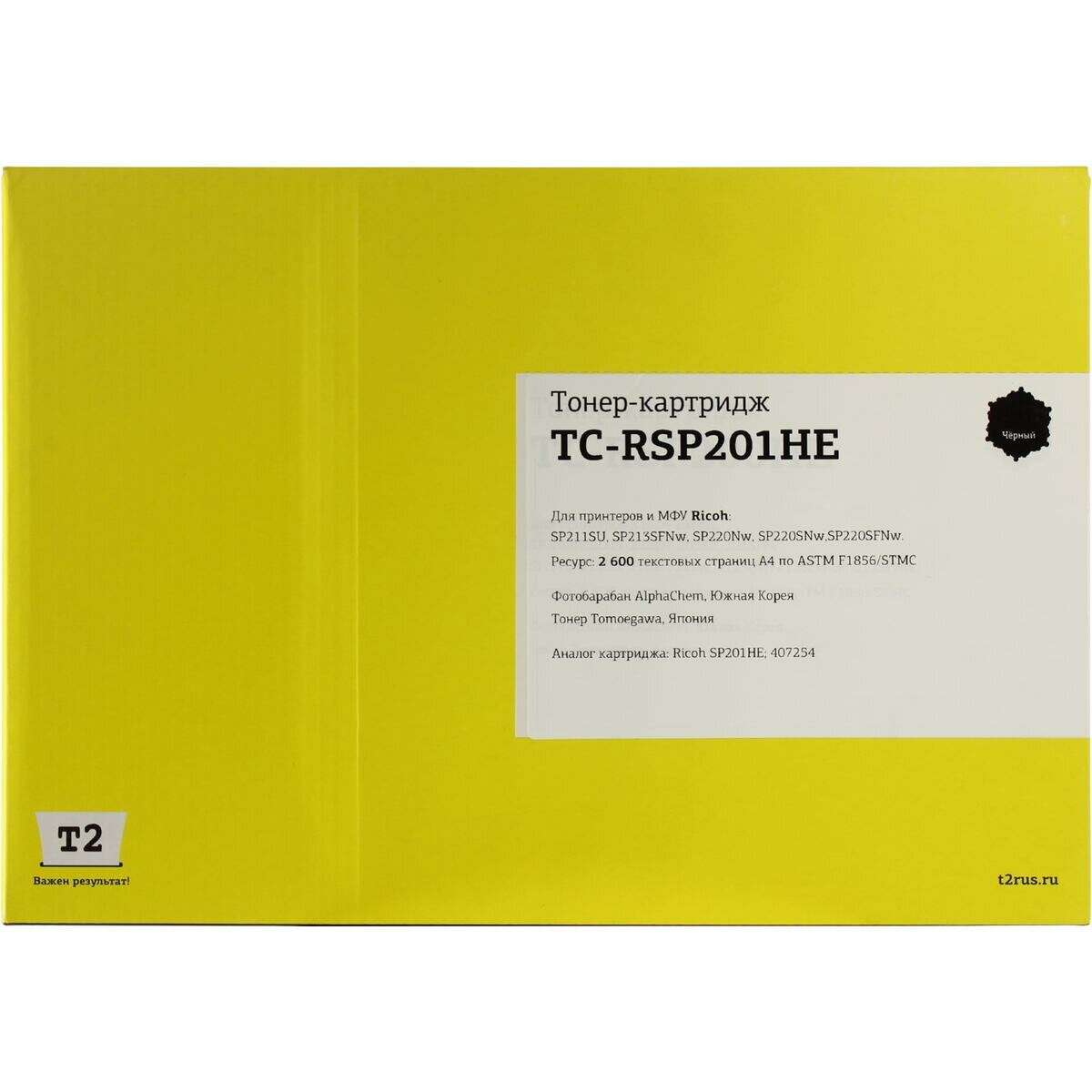 T2 SP201HE/40 Картридж TC-RSP201HE для Ricoh Aficio SP211SU/SP213SFNw/SP220Nw/SP220SNw/SP220SFNw (2600стр.) чёрный, с чипом