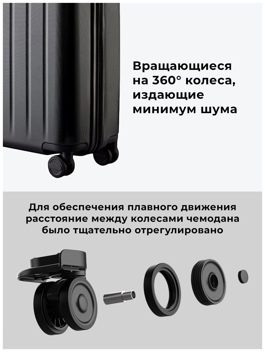Чемодан Xiaomi NINETYGO Danube 20", серый, пластиковый, 4 колеса, блокировка замков для безопасности
