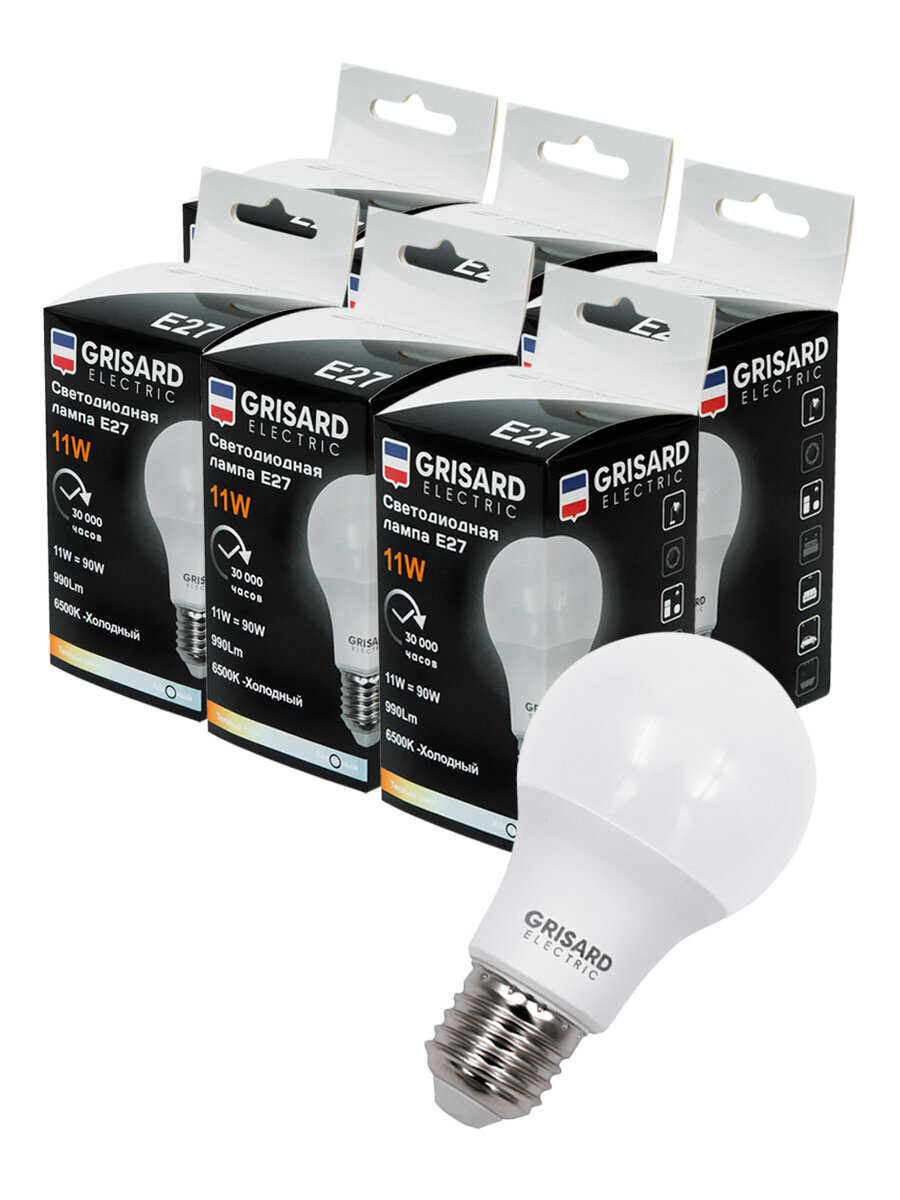 Купить Лампа светодиодная GRISARD ELECTRIC шар A60 Е27 11Вт 6500К 220В 6шт