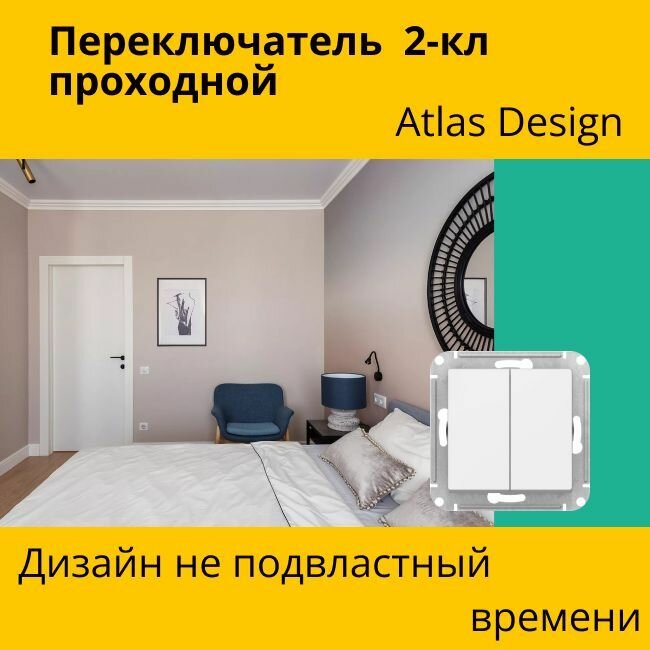 Переключатель 2-клавишный. 10А, белый ATLAS DESIGN / двухклавишный / переключатель (комплект 8 шт)
