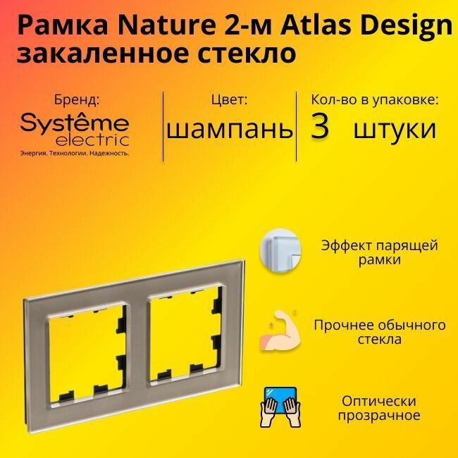 Купить Рамка двойная Systeme Electric Atlas Design Nature закаленное стекло шампань ATN320502 - 3 шт.