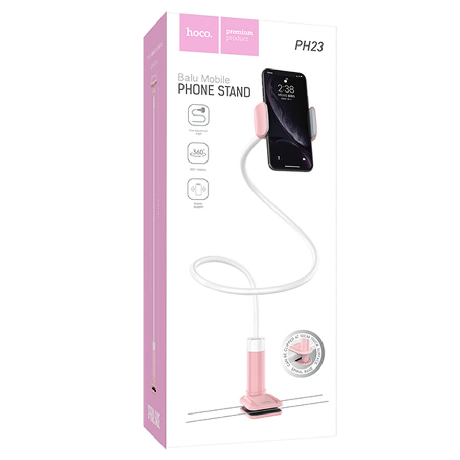 Держатель настольный HOCO, PH23, Balu, для смартфона 4,5"-6,5", силикон, металл, гибкая нога 70 см, цвет: розовый, белая вставка