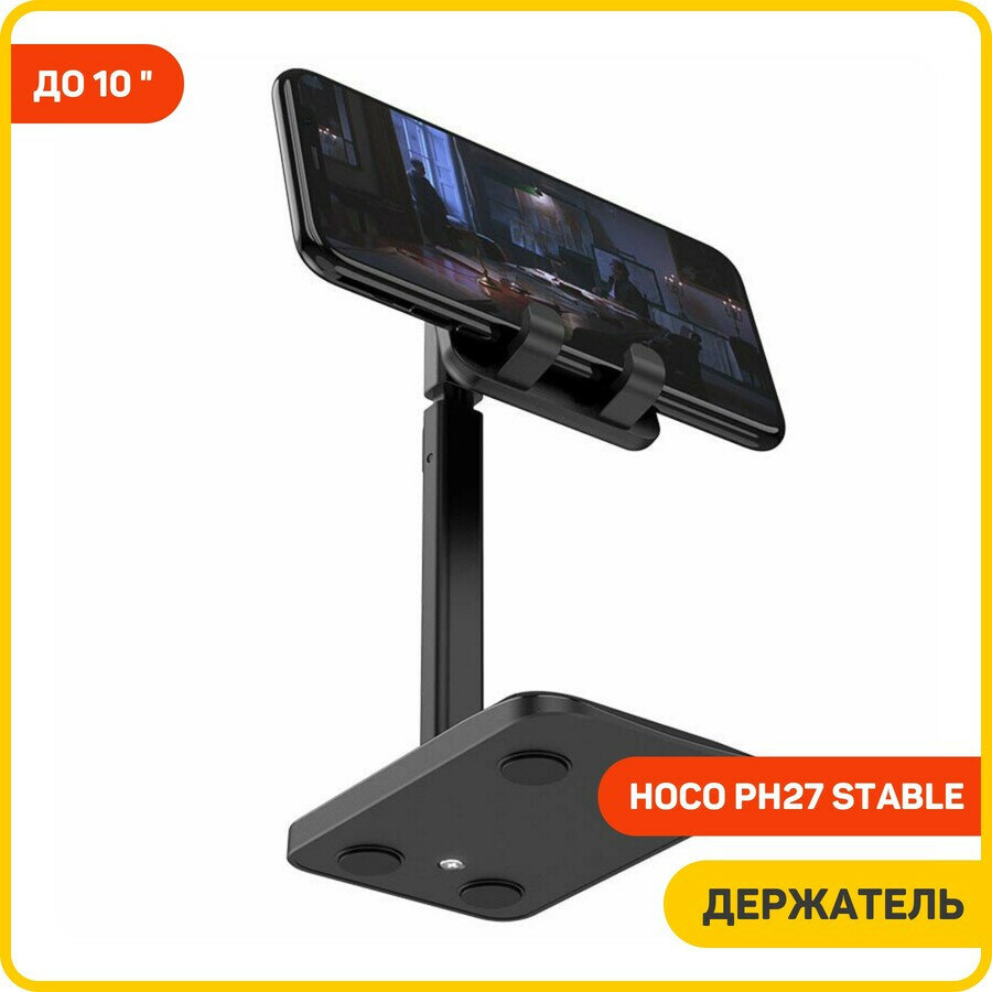 Держатель настольный Hoco PH27 Black для телефона и планшета 4.7"-10", регулируемый, черный