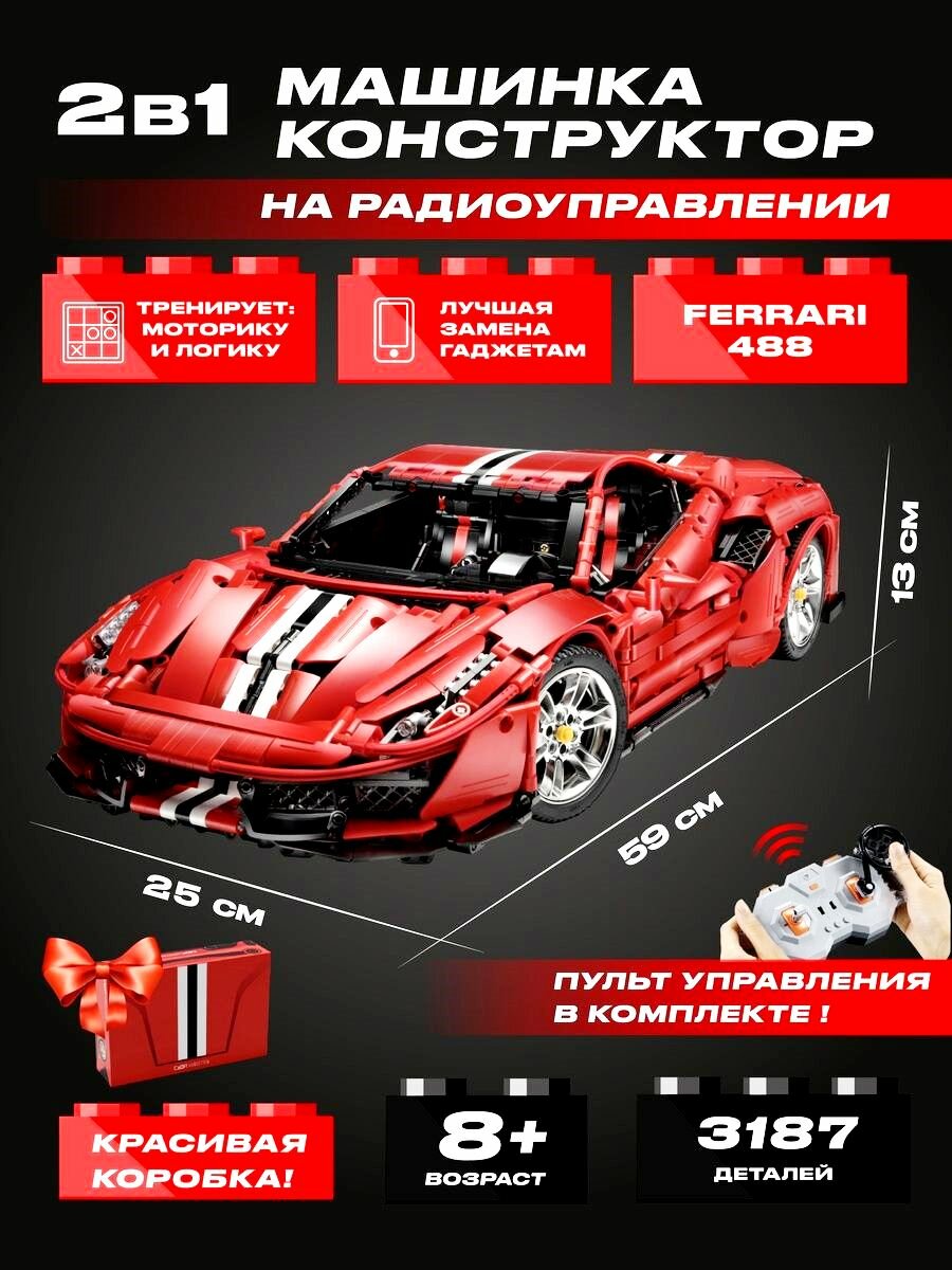СохранитьКонструктор CADA Ferrari 488 (3187 деталей, пульт, электропривод) - C61042W (C61042W) интересное: