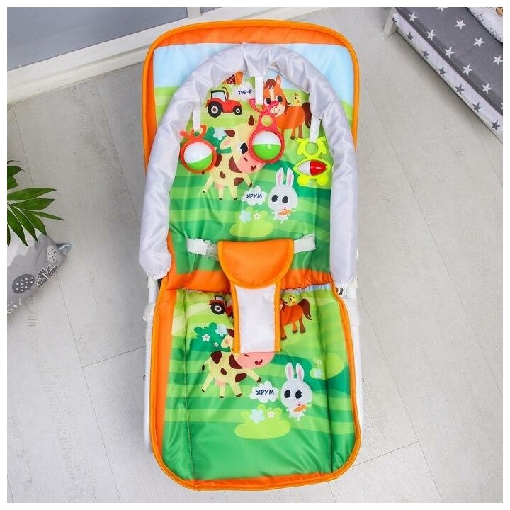 Шезлонг-качалка для новорождённых «Домашние животные», игровая дуга, съёмные игрушки микс