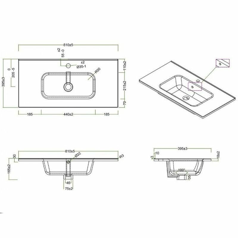 Керамическая раковина 810x390x170 BelBagno BB800/390ETL