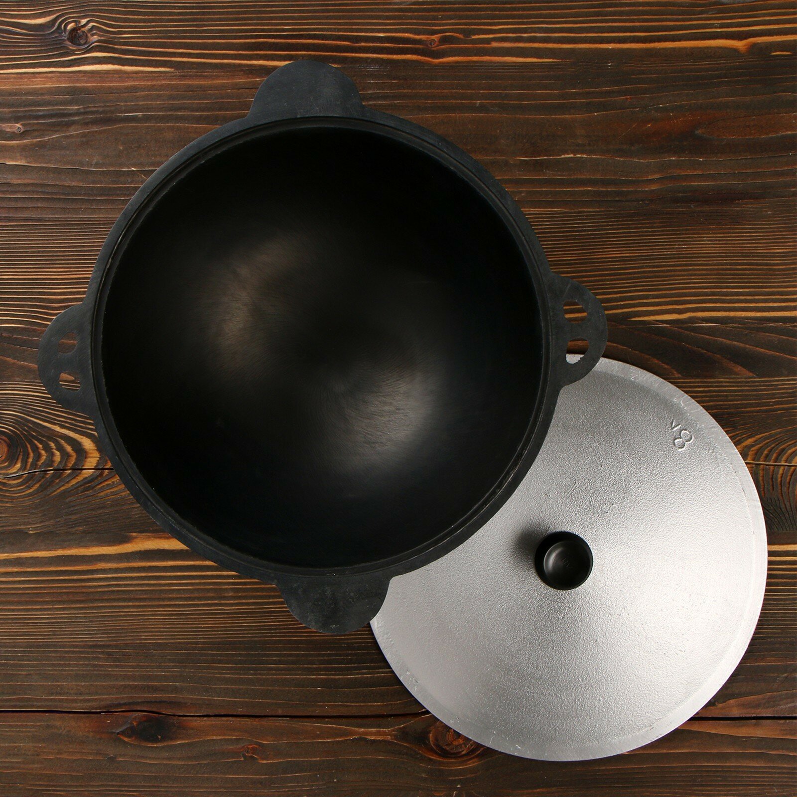 Казан чугунный, 8 л, плоское дно, алюминиевая крышка 2737151 интересное: