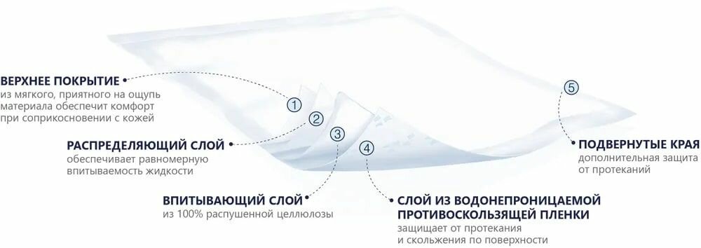 Seni Soft / Сени Софт - одноразовые впитывающие пеленки, 60x60 см, 5 шт.