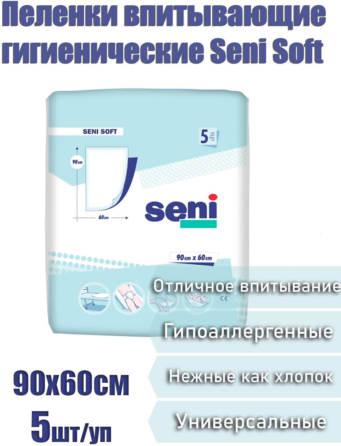 Пеленки одноразовые гигиенические впитывающие для взрослых и детей 60х90см Seni Soft, 5шт.