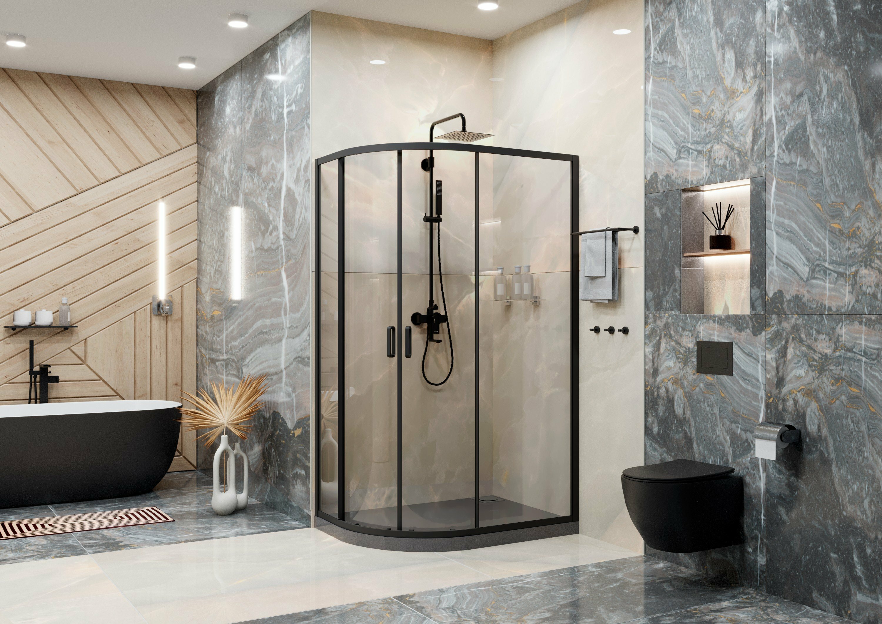Душевой уголок Vincea city vsr-5ct9011clb, 1100 900, черный, стекло прозрачное vsr-5ct9011clb