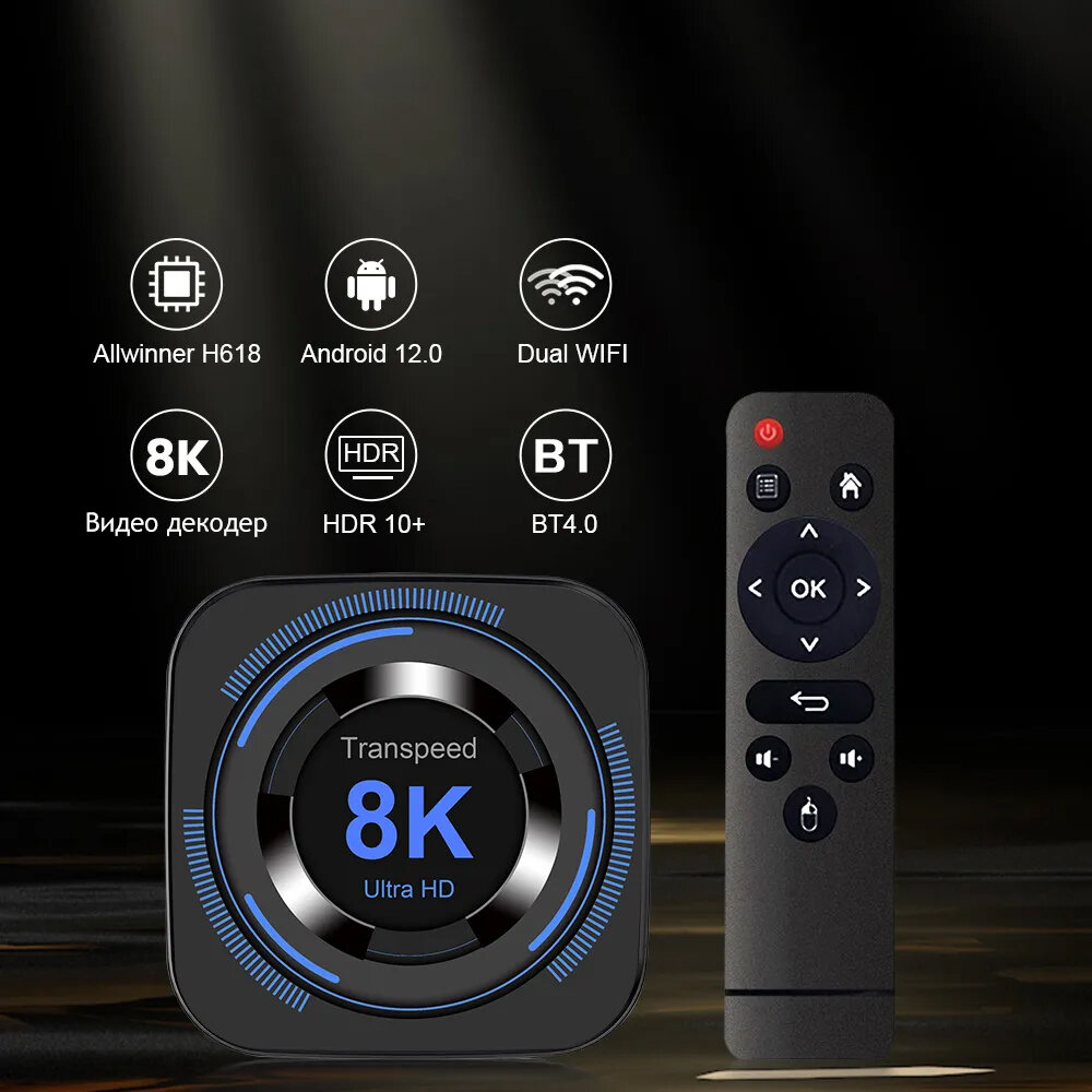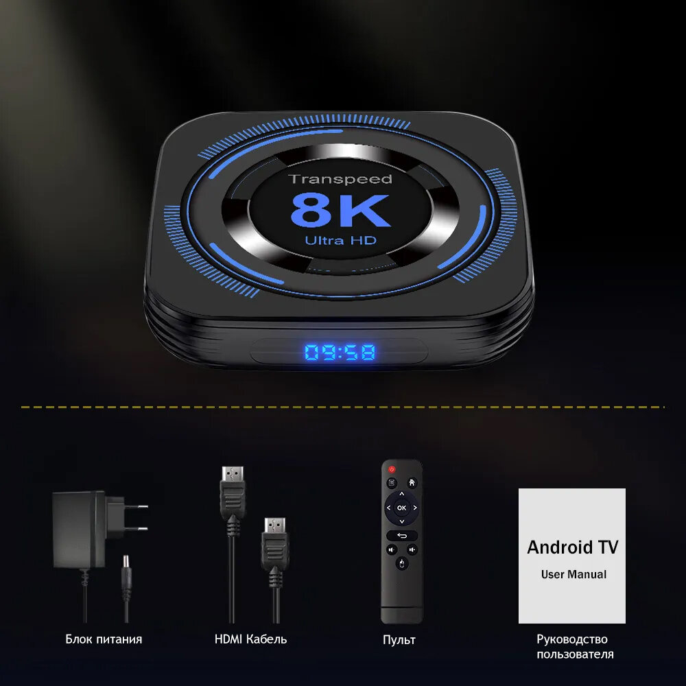 Смарт ТВ приставка, ТВ бокс Transpeed 6K (Андроид 10, 5G, 2/16 Гб) / TV BOX / Андроид / Cмарт приставка