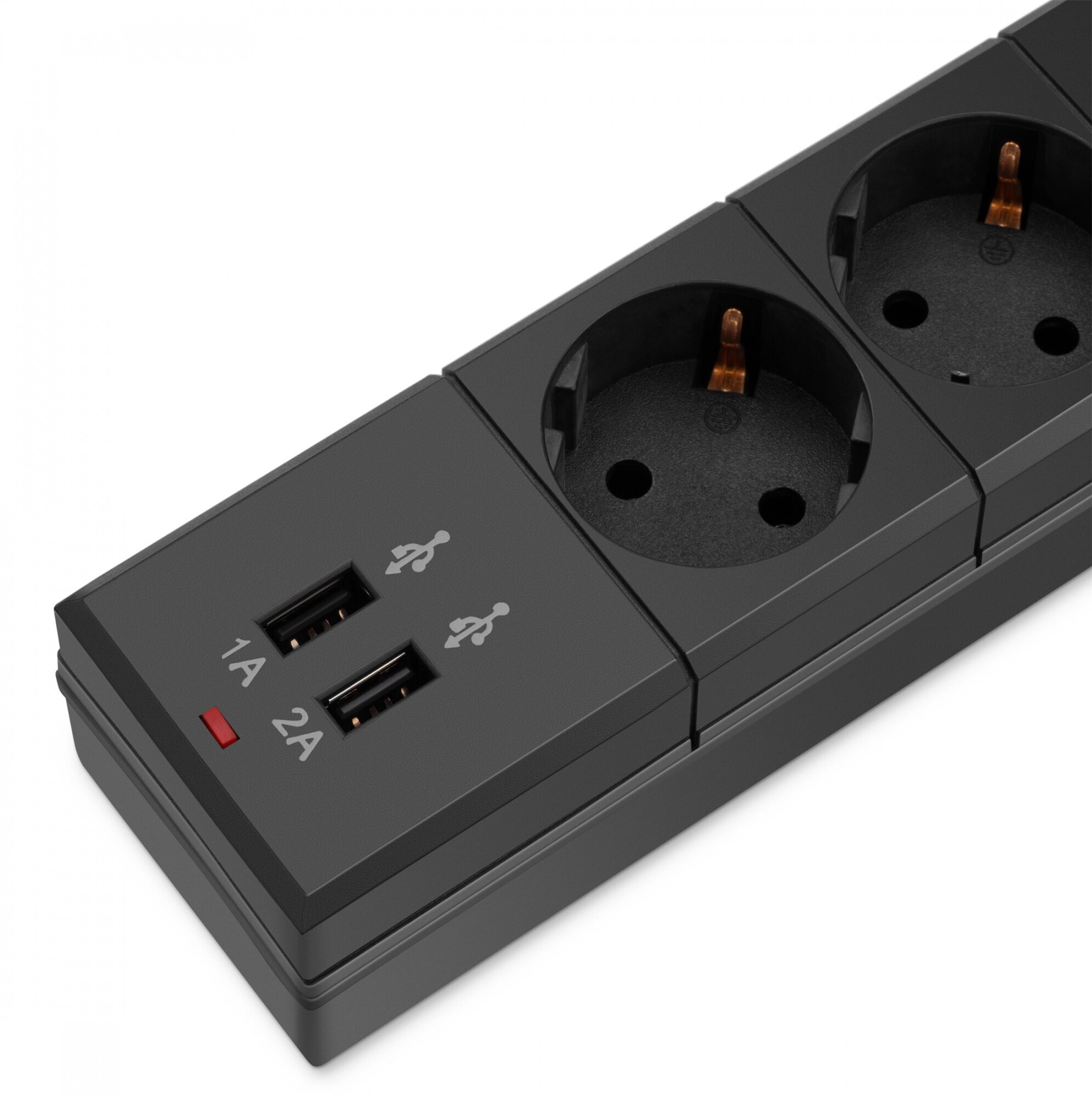 | Плюсы: | Длина шнура 5м, количество гнезд самый большой достаток, 2 usb порта на 2,1А и 1А, стабильная работа |
