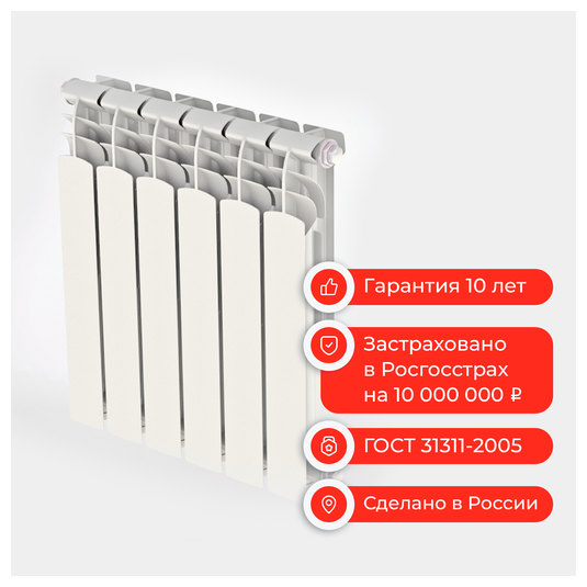 Радиатор Невинномысский Радиаторный Завод 500/100(8), оптима, алюм, 6 секц интересное:
