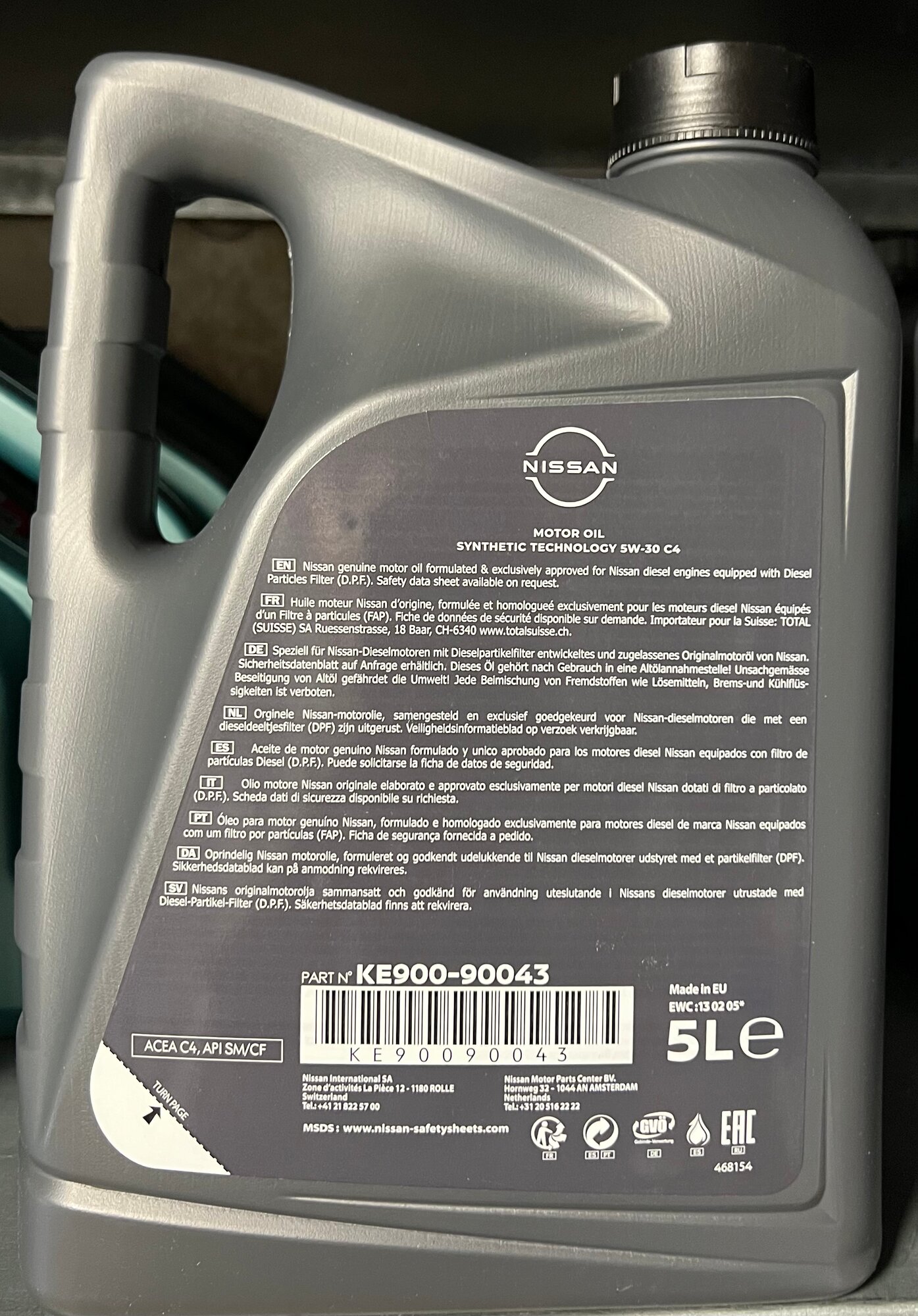 NISSAN KE900-90043 Масло моторное NISSAN Motor Oil 5W30 C4 DPF - 5 литров EU Бельгия