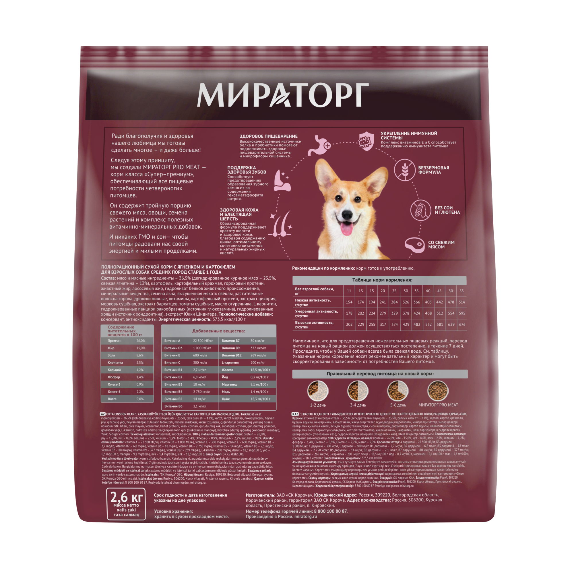 Купить Сухой корм для собак Мираторг PRO Meat с ягненком и картофелем для взрослых собак средних пород старше 1 года 1 уп. х 1 шт. х 2.6 кг