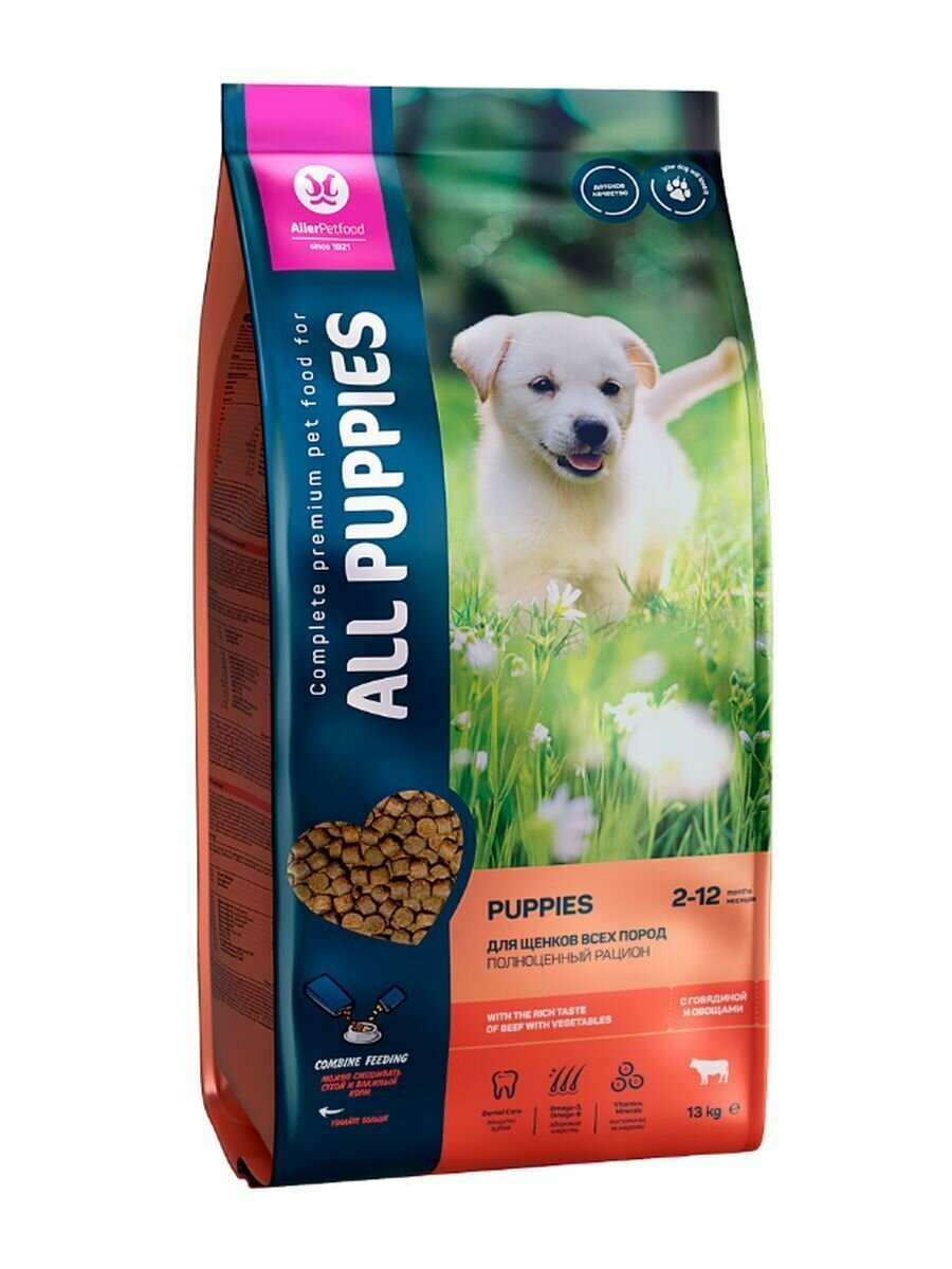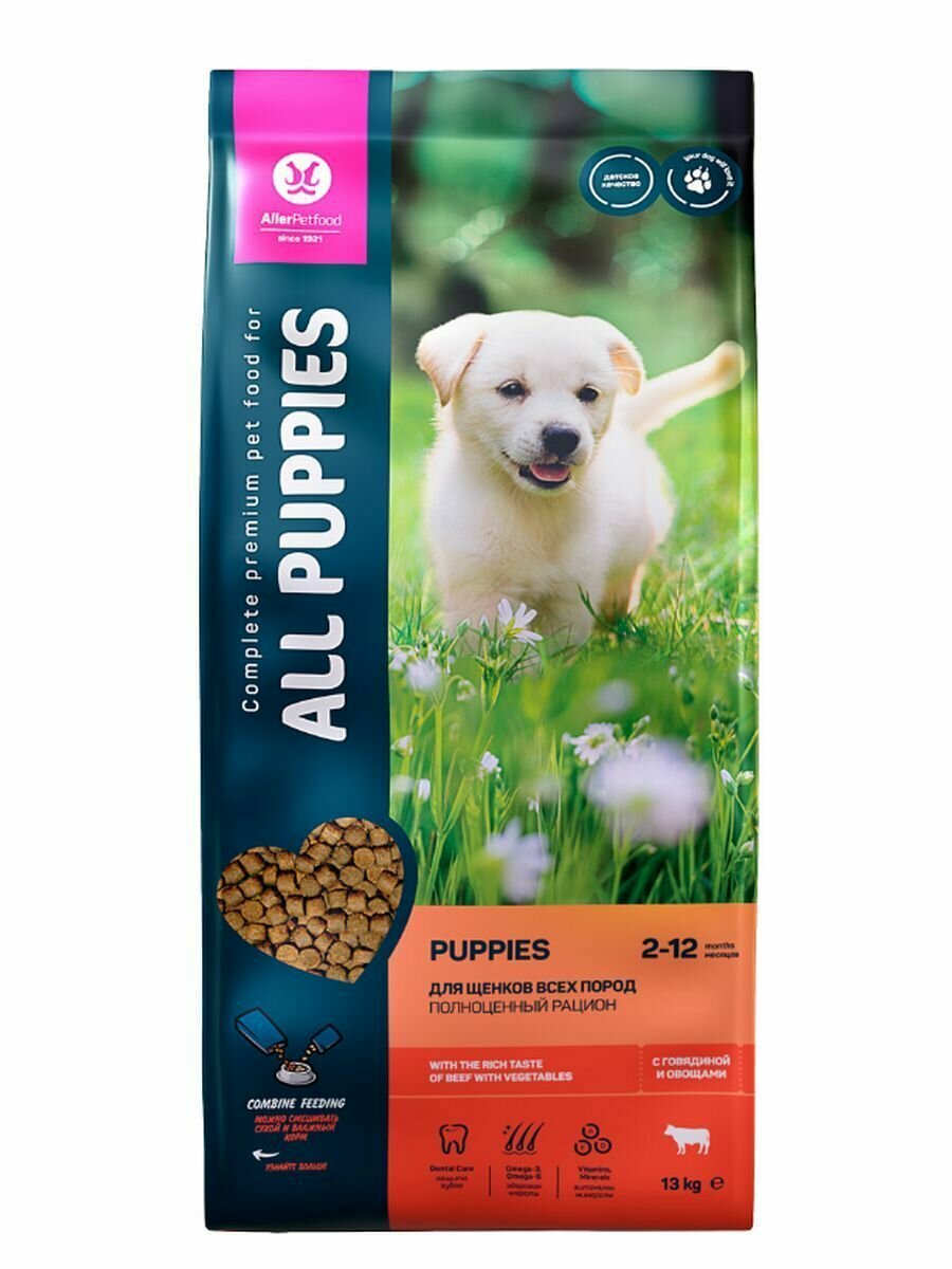 Корм сухой All Puppies для щенков, с говядиной и овощами, 13 кг