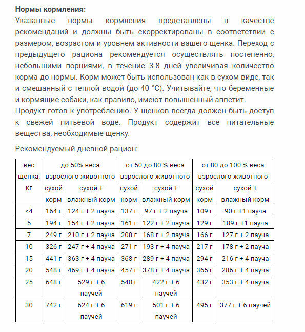 | Возраст животного | взрослые (1-6 лет) / щенки (до 1 года) |