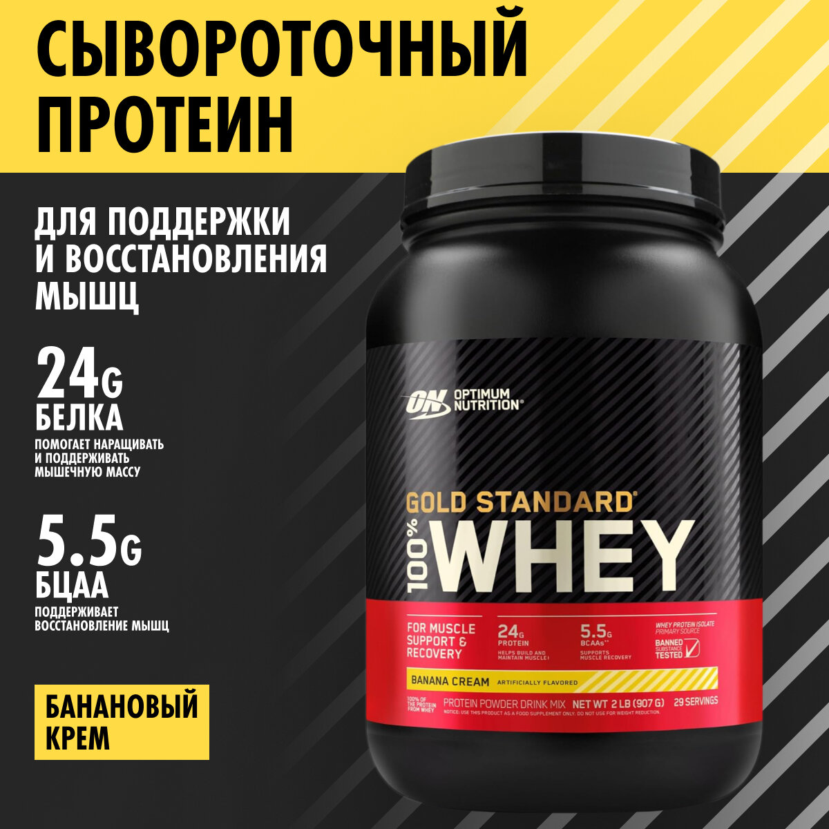 ON 100% Whey Gold standard 2lb (Banana Cream) - Протеин 907 грамм, (Банановый крем) интересное: