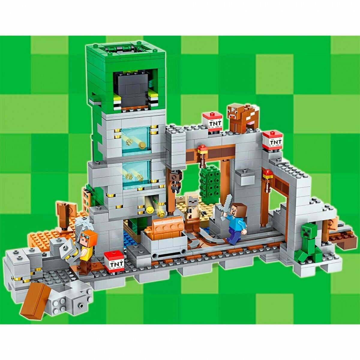 Конструктор Майнкрафт Шахта Крипера 852 деталей / My World / Minecraft конструктор / фигурки Стива Алекс / совместим со всеми конструкторами
