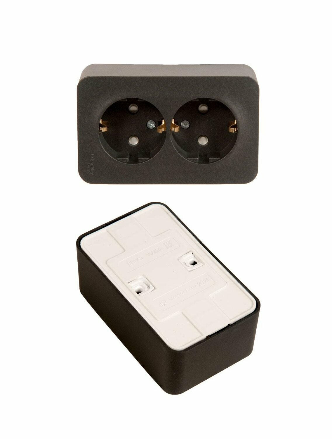 2шт. - Розетка BLANCA наружная двойная, с заземлением, со шторками, с изолирующей пластиной, 16А, 250В, антрацит / Systeme Electric; арт. BLNRA011216; оригинал / - комплект 2шт