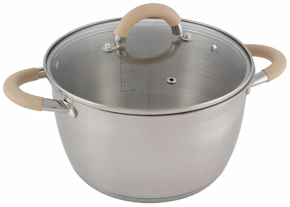Кастрюля Fortuna из нержавеющей стали с крышкой, объем 3,3 л, матовый корпус, ручки с силиконом